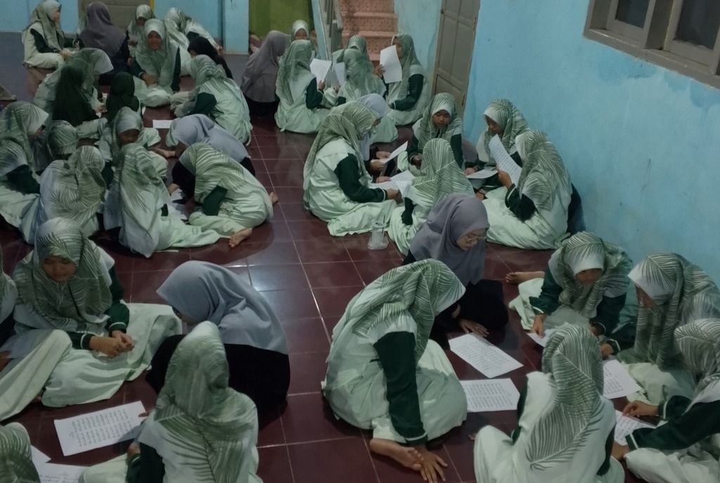 Berlatih ceramah dihadapan semua santri